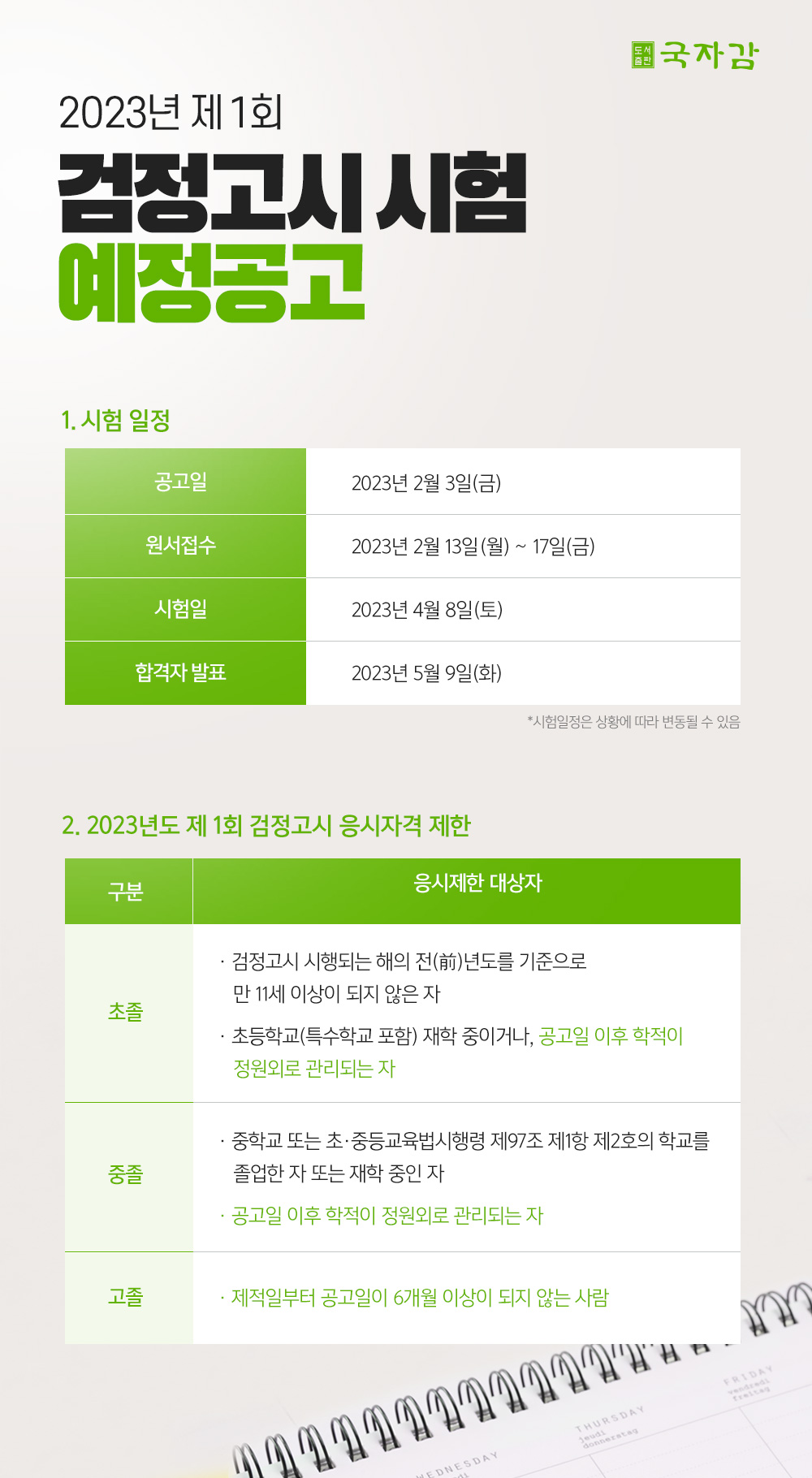 Á¦¸ñ : ¡Ú2023³â 4¿ù °ËÁ¤°í½Ã ½ÃÇè ¿¹Á¤ °ø°í¡Ú